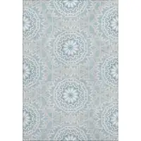 Gray And Silver Floral Washable Area Rug With UV Protection