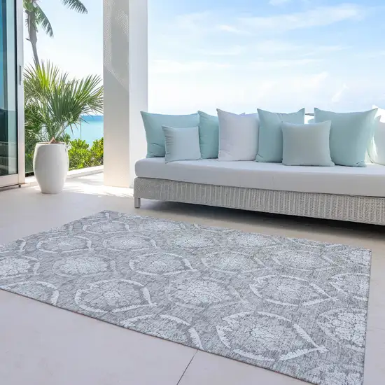 Gray And Silver Medallion Washable Indoor Outdoor Area Rug