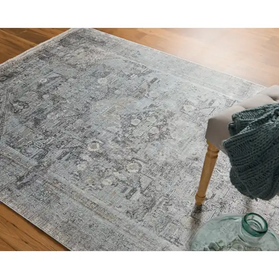 Gray and Silver Oriental Power Loom Worn Faded Area Rug