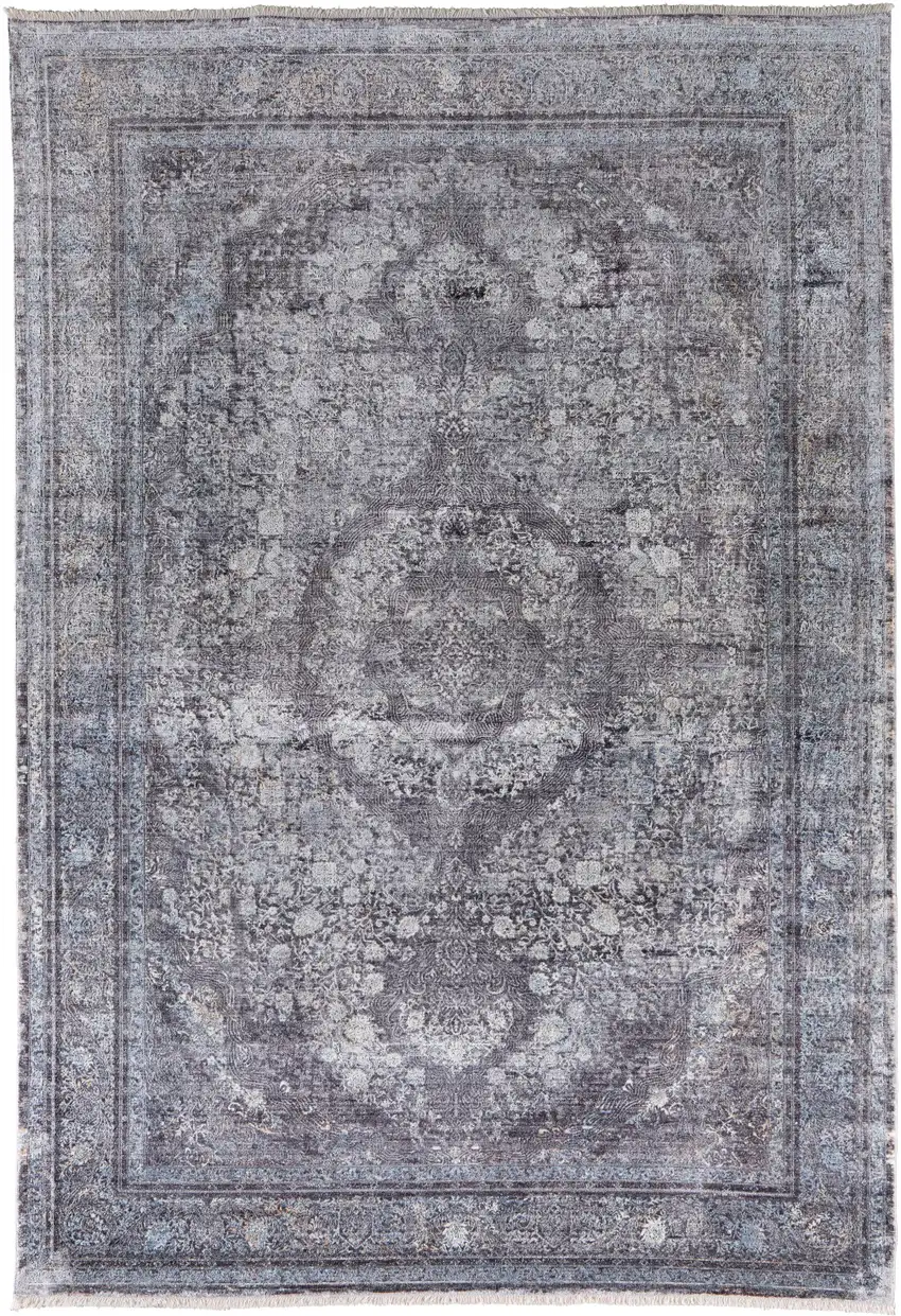 Gray and Silver Oriental Power Loom Worn Faded Area Rug