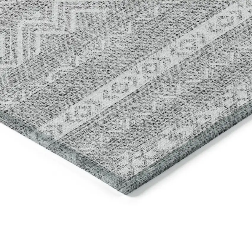 Gray And Silver Southwestern Washable Indoor Outdoor Area Rug