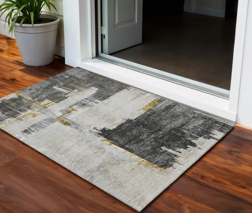 Gray And Tan Abstract Washable Indoor Outdoor Area Rug