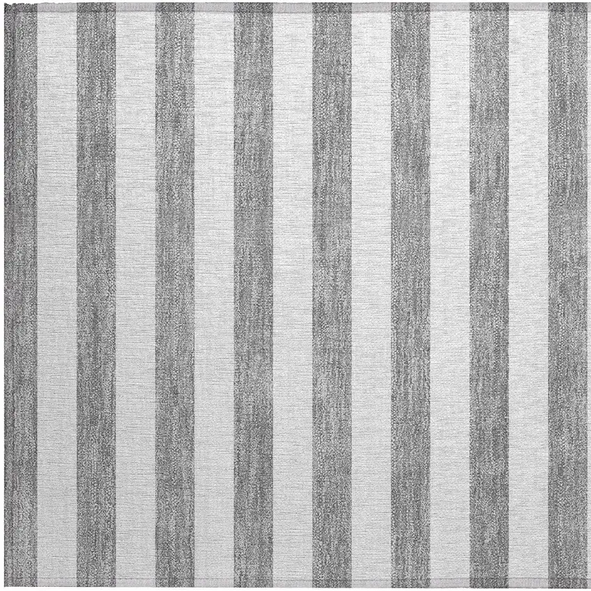 Gray and White Striped Washable Non Skid Indoor Outdoor Area Rug