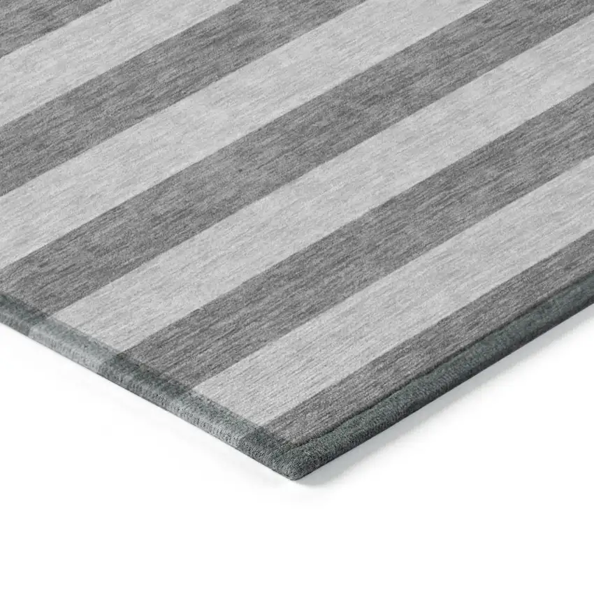 Gray and White Striped Washable Non Skid Indoor Outdoor Area Rug