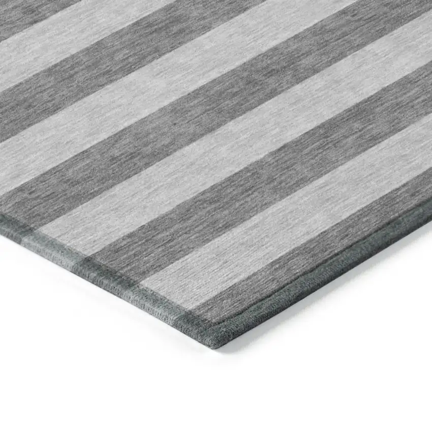 Set an inviting tone in your space with this 10-foot x 14-foot gray and white striped washable stain resistant non skid indoor outdoor area rug. This rectangle shaped rug features a striped design in gray and white to give it visual interest. A classic shape marries with good looking design for your space the coloring of this rug adds a delightfully neutral tone to your home and will easily match with most any decor. Ideal for spaces with kids and pets, this rug is stain resistant to help repel stains and spilled liquids. Area rugs help to give warmth and sense of home to your space. 120-inch H x 168-inch W x 0.19-inch D