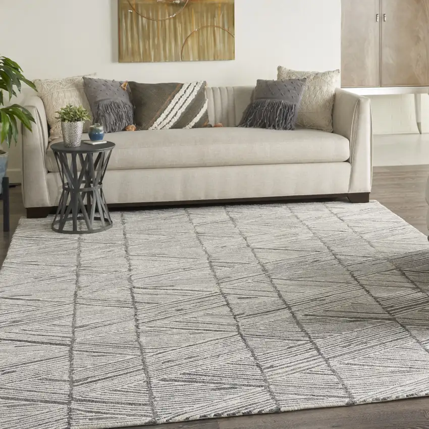 Gray And White Wool Abstract Area Rug