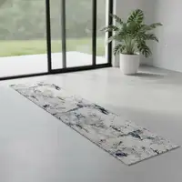 This runner rug from RayneCraft boasts a striking design of asymmetrical gray blocks that add a unique touch to any floor. It's the ideal addition to any room seeking an essence of modern elegance.