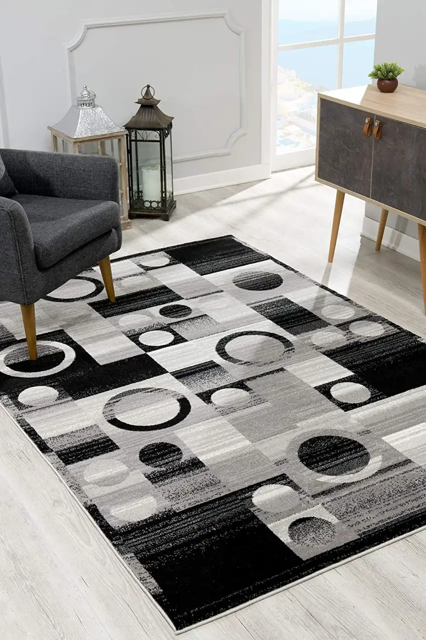 With its stain-resistant and easy-to-clean features, maintaining the Gray Blocks and Rings Runner Rug is a breeze. Simply vacuum it regularly to keep it looking as good as new. Perfect for families with kids or pets, this rug combines effortless maintenance with exceptional longevity, making it a practical and stylish addition to your home.