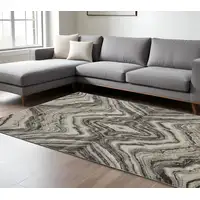 Gray Blue And Gold Wool Abstract Tufted Handmade Stain Resistant Area Rug