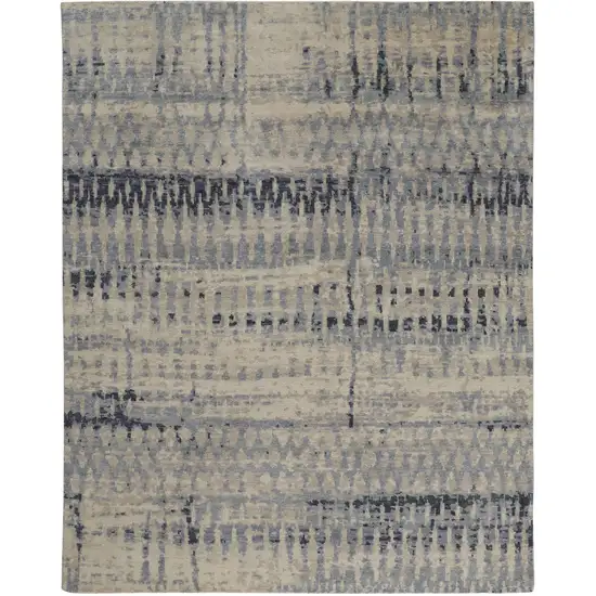 Gray Blue and Ivory Wool Abstract Hand Knotted Area Rug