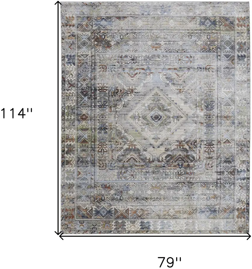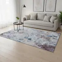 Gray Blue and Red Abstract Power Loom Worn Faded Area Rug