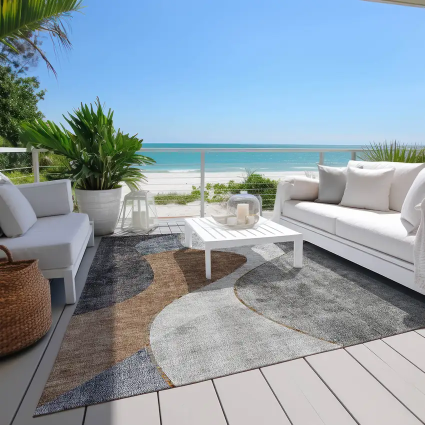 Gray Charcoal And Brown Abstract Washable Indoor Outdoor Area Rug