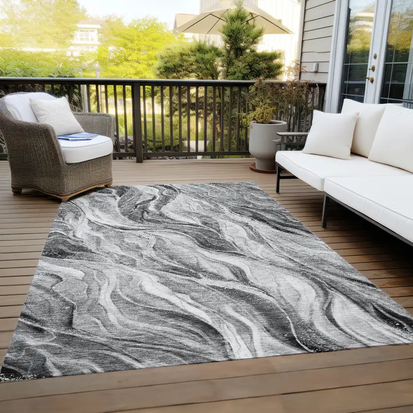 Gray Charcoal And Ivory Abstract Washable Indoor Outdoor Area Rug