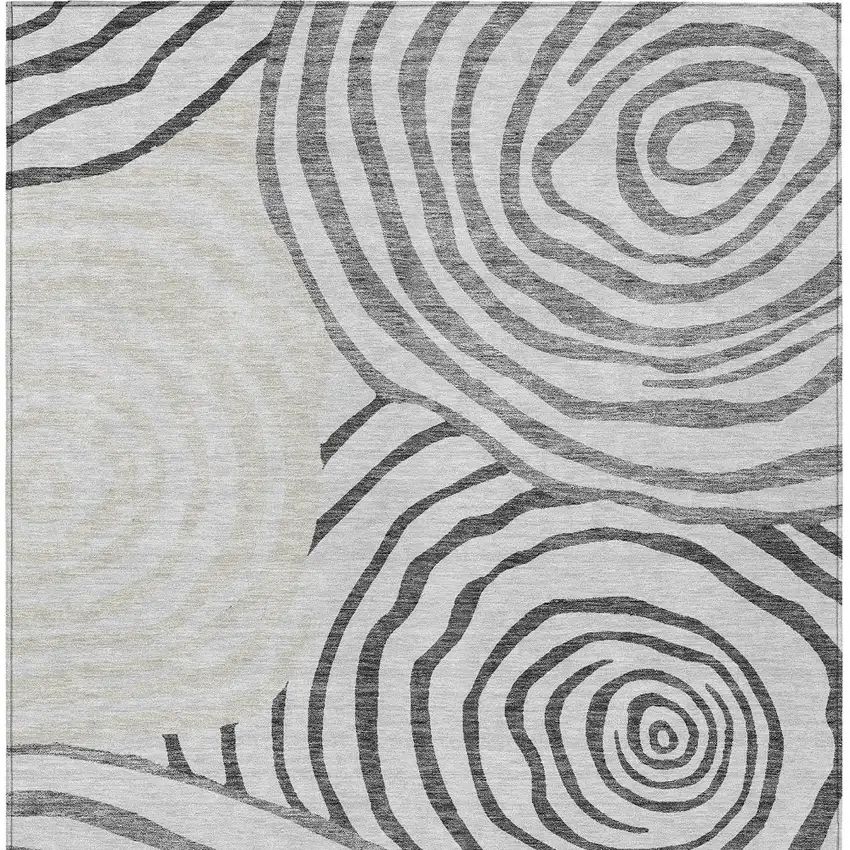 Gray Charcoal And Silver Abstract Washable Indoor Outdoor Area Rug