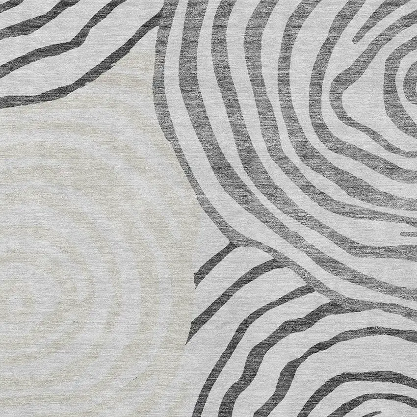 Gray Charcoal And Silver Abstract Washable Indoor Outdoor Area Rug