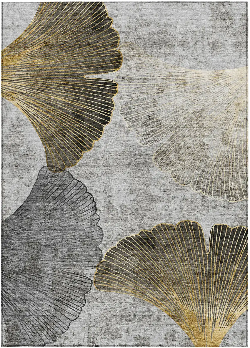 Gray Charcoal And Silver Floral Washable Indoor Outdoor Area Rug