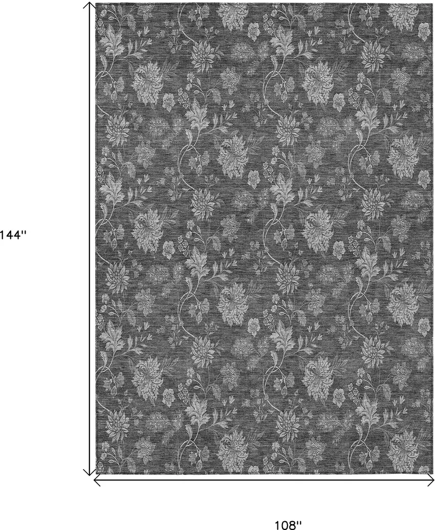 Set an inviting tone in your space with this 9-foot x 12-foot gray charcoal and silver floral washable indoor outdoor area rug. This rectangle shaped rug features a floral design that will work well both indoors or out. A classic shape marries with good looking design for your living room, hall, bedroom, porch, patio, or poolside. Ideal for outdoor spaces or high traffic areas with kids and pets, this rug is made from heavy duty polyester that is stain resistant to help repel water, dirt, and stains. Versatile in use, durable, and easy to maintain, this rug is an ideal solution to add a decorative and inviting touch to your indoor or outdoor space. 108-inch h x 144-inch w x 0.19-inch d.