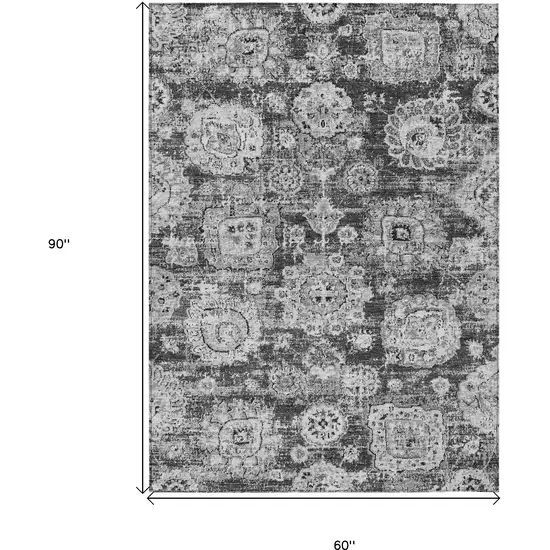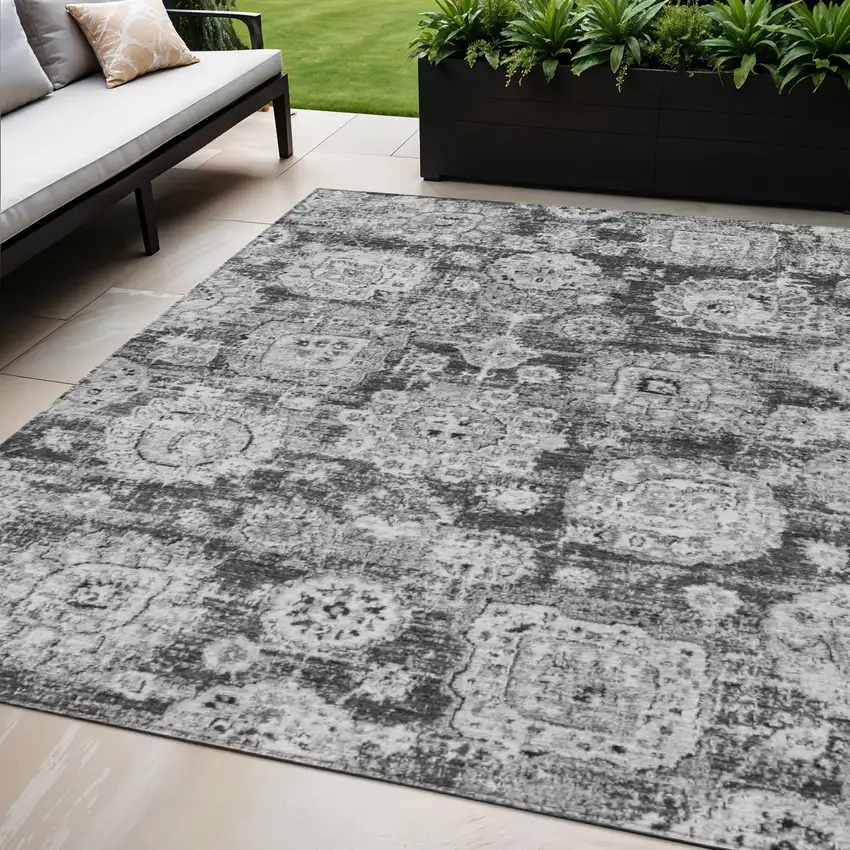 Set an inviting tone in your space with this 5-foot x 8-foot gray charcoal and silver floral washable indoor outdoor area rug. This rectangle shaped rug features a floral design that will work well both indoors or out. A classic shape marries with good looking design for your living room, hall, bedroom, porch, patio, or poolside. Ideal for outdoor spaces or high traffic areas with kids and pets, this rug is made from heavy duty polyester that is stain resistant to help repel water, dirt, and stains. Versatile in use, durable, and easy to maintain, this rug is an ideal solution to add a decorative and inviting touch to your indoor or outdoor space. 60-inch h x 90-inch w x 0.19-inch d.