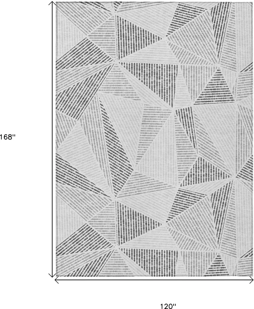 Add great coloration and comfortable texture to your space with this 10-foot x 14-foot gray charcoal and silver geometric washable indoor outdoor area rug. This rectangle shaped rug features a geometric design that will work well both indoors or out. A classic shape marries with good looking design for your living room, hall, bedroom, porch, patio, or poolside. Ideal for outdoor spaces or high traffic areas with kids and pets, this rug is made from heavy duty polyester that is stain resistant to help repel water, dirt, and stains. Versatile in use, durable, and easy to maintain, this rug is an ideal solution to add a decorative and inviting touch to your indoor or outdoor space. 120-inch h x 168-inch w x 0.19-inch d.