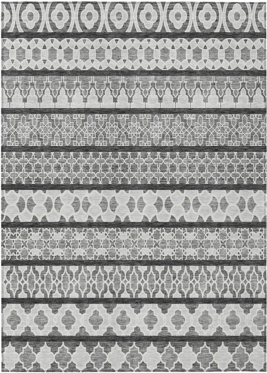 Set an inviting tone in your space with this 10-foot x 14-foot gray charcoal and silver quatrefoil washable indoor outdoor area rug. This rectangle shaped rug features a quatrefoil design that will work well both indoors or out. A classic shape marries with good looking design for your living room, hall, bedroom, porch, patio, or poolside. Ideal for outdoor spaces or high traffic areas with kids and pets, this rug is made from heavy duty polyester that is stain resistant to help repel water, dirt, and stains. Versatile in use, durable, and easy to maintain, this rug is an ideal solution to add a decorative and inviting touch to your indoor or outdoor space. 120-inch h x 168-inch w x 0.19-inch d.