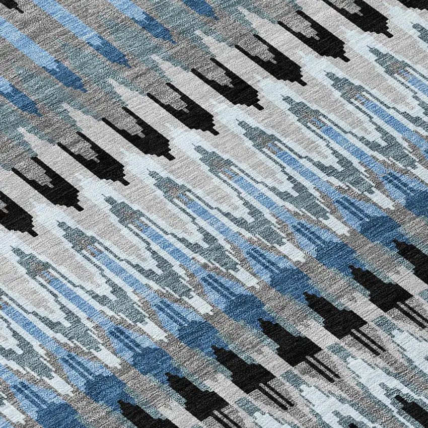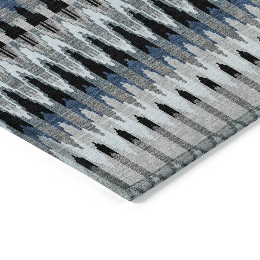 Gray Charcoal And Silver Southwestern Washable Indoor Outdoor Area Rug