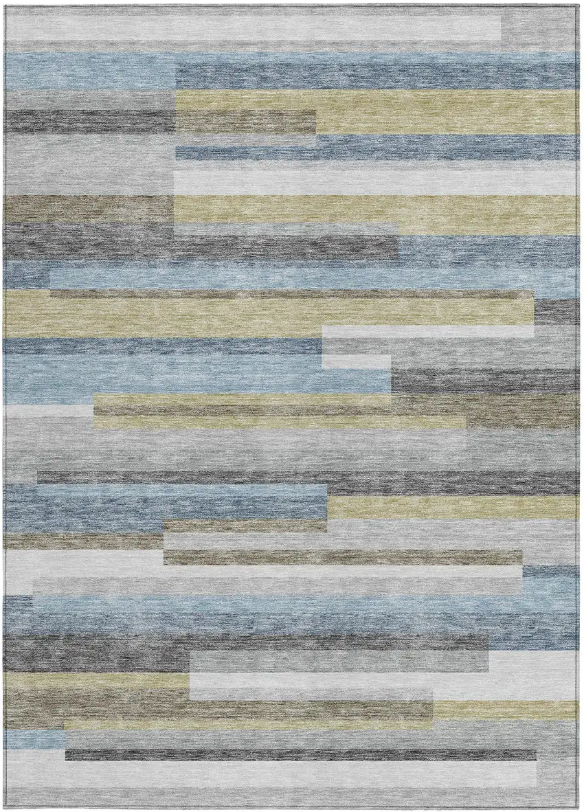 Add some artistry to your room with this 5-foot x 8-foot gray denim blue and sky blue striped washable indoor outdoor area rug. This rectangle shaped rug features a striped design that will work well both indoors or out. A classic shape marries with good looking design for your living room, hall, bedroom, porch, patio, or poolside. Ideal for outdoor spaces or high traffic areas with kids and pets, this rug is made from heavy duty polyester that is stain resistant to help repel water, dirt, and stains. Makes a great way to dress up your patio, porch, or poolside, but also works well as a durable and easy to maintain option in the kitchen, family room, or mudroom. 60-inch h x 90-inch w x 0.19-inch d.