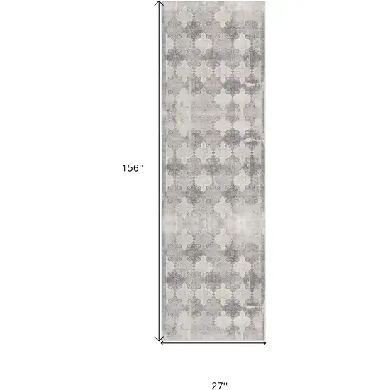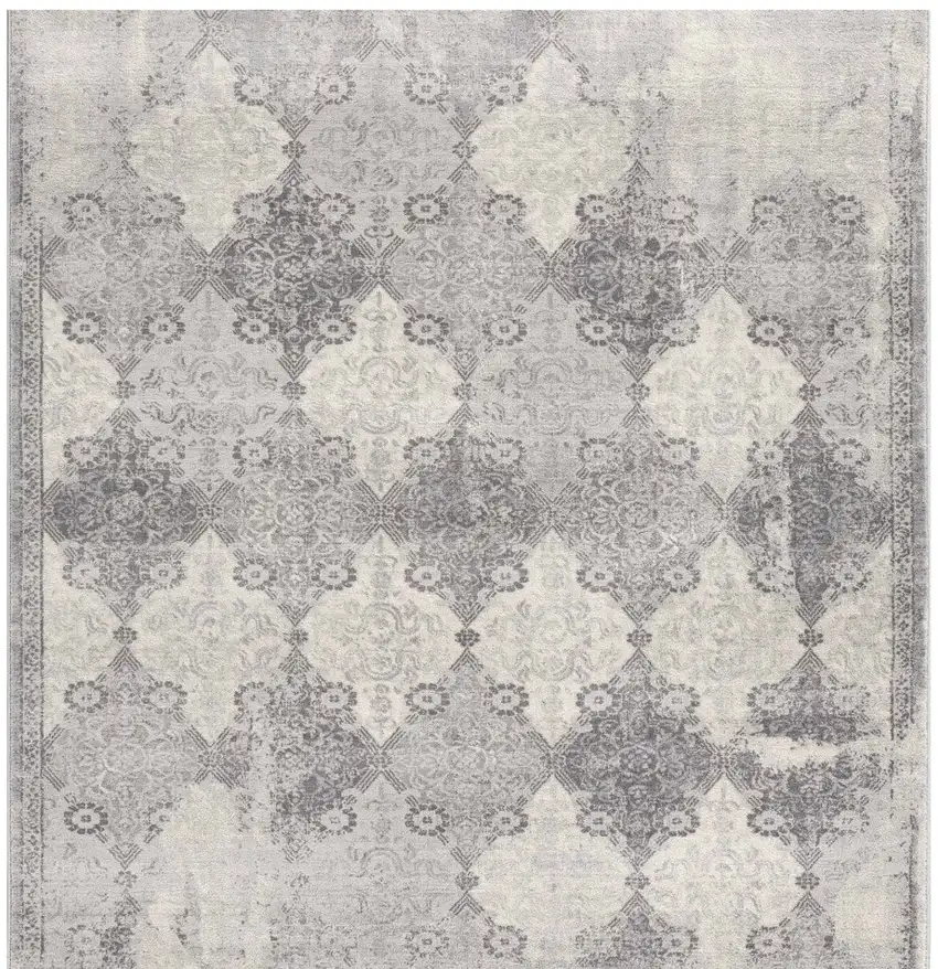 Gray Distressed Trellis Pattern Runner Rug