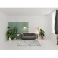 Gray Gold And Blue Floral Washable Area Rug With UV Protection