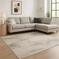 Gray Ivory And Beige Geometric Washable Area Rug With UV Protection