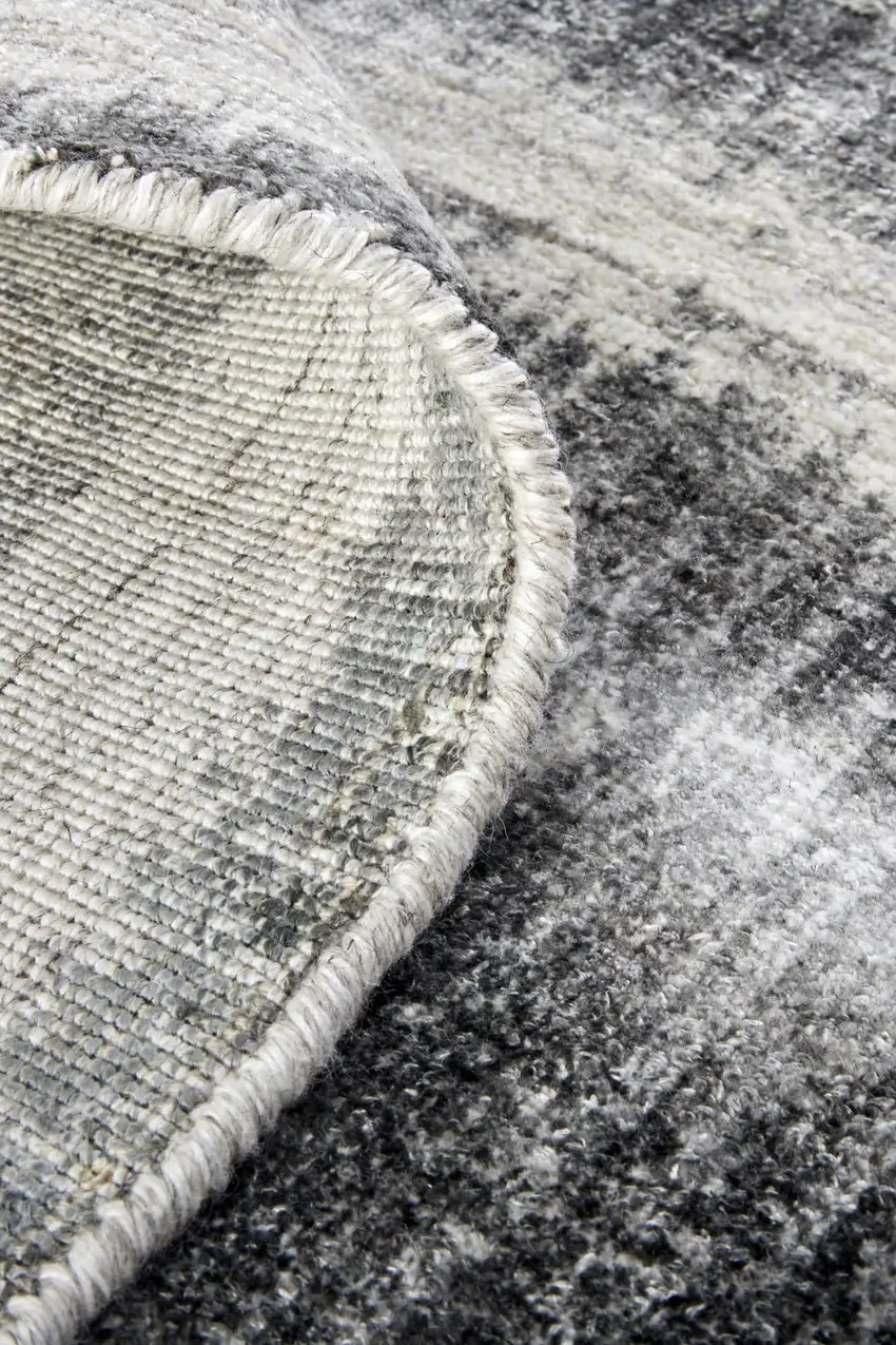 Experience unmatched comfort and softness with the Gray, Ivory, and Black Abstract Hand-Woven Area Rug. The plush, dense pile offers a luxurious feel underfoot and provides cushioning for your feet. Whether you're walking barefoot or lounging on the rug, you'll appreciate its comforting touch.