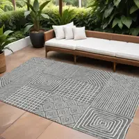 Gray Ivory And Gold Damask Washable Indoor Outdoor Area Rug