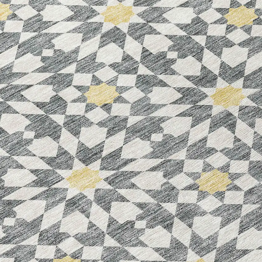 Gray Ivory And Gold Floral Medallion Washable Indoor Outdoor Area Rug