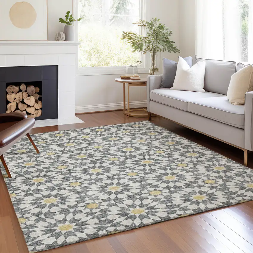Add some artistry to your room with this 10-foot x 14-foot gray ivory and gold floral medallion washable indoor outdoor area rug. This rectangle shaped rug features a floral medallion design that will work well both indoors or out. A classic shape marries with good looking design for your living room, hall, bedroom, porch, patio, or poolside. Ideal for outdoor spaces or high traffic areas with kids and pets, this rug is made from heavy duty polyester that is stain resistant to help repel water, dirt, and stains. Makes a great way to dress up your patio, porch, or poolside, but also works well as a durable and easy to maintain option in the kitchen, family room, or mudroom. 120-inch h x 168-inch w x 0.19-inch d.