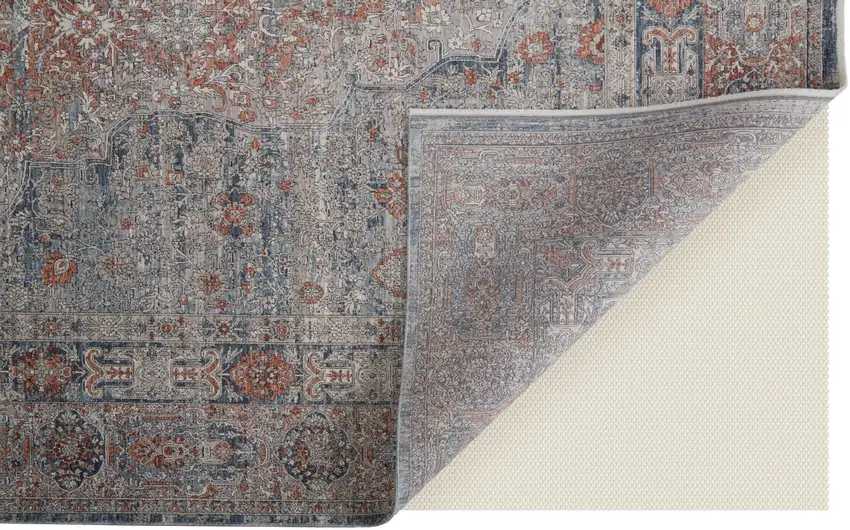 This 7-foot x 10-foot gray ivory and orange oriental power loom worn faded area rug with fringe, is a great way to add warmth to a room. This rectangle shaped rug features a oriental design in gray ivory and orange to give it visual interest. A classic shape marries with good looking design for your space ideal for spaces with kids and pets, this rug is stain resistant to help repel stains and spilled liquids. Tassel ends bring a timeless and fashionable look to your interior. Area rugs help to give warmth and sense of home to your space. 79-inch H x 118-inch W x 0.25-inch D