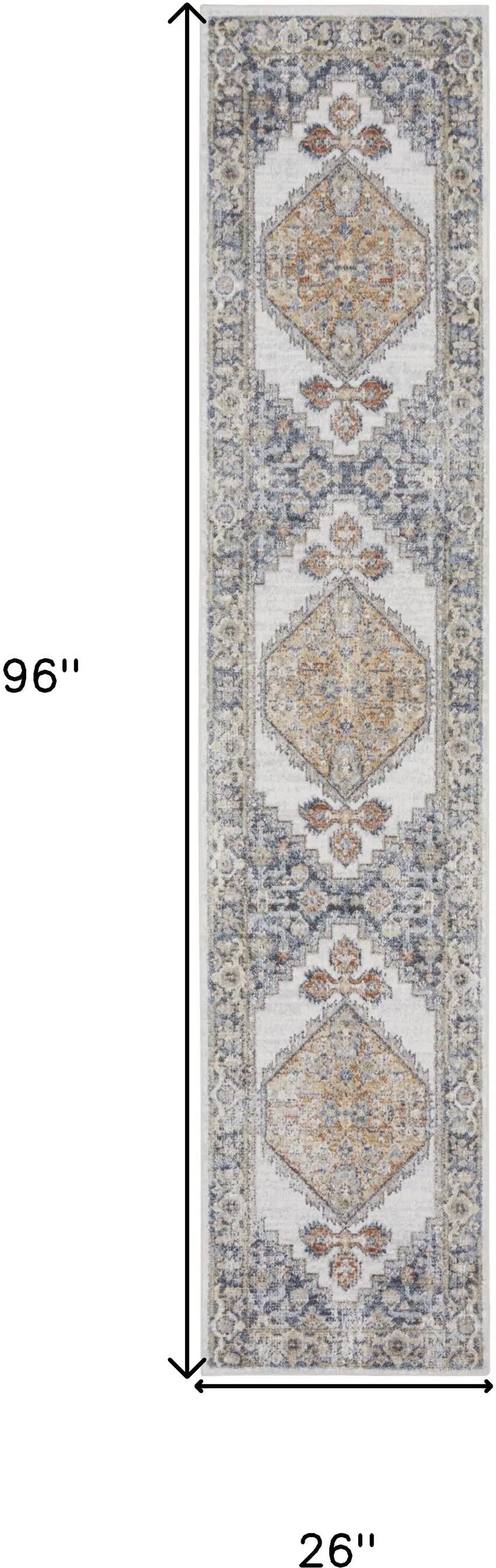 Gray Oriental Power Loom Distressed Washable Runner Rug