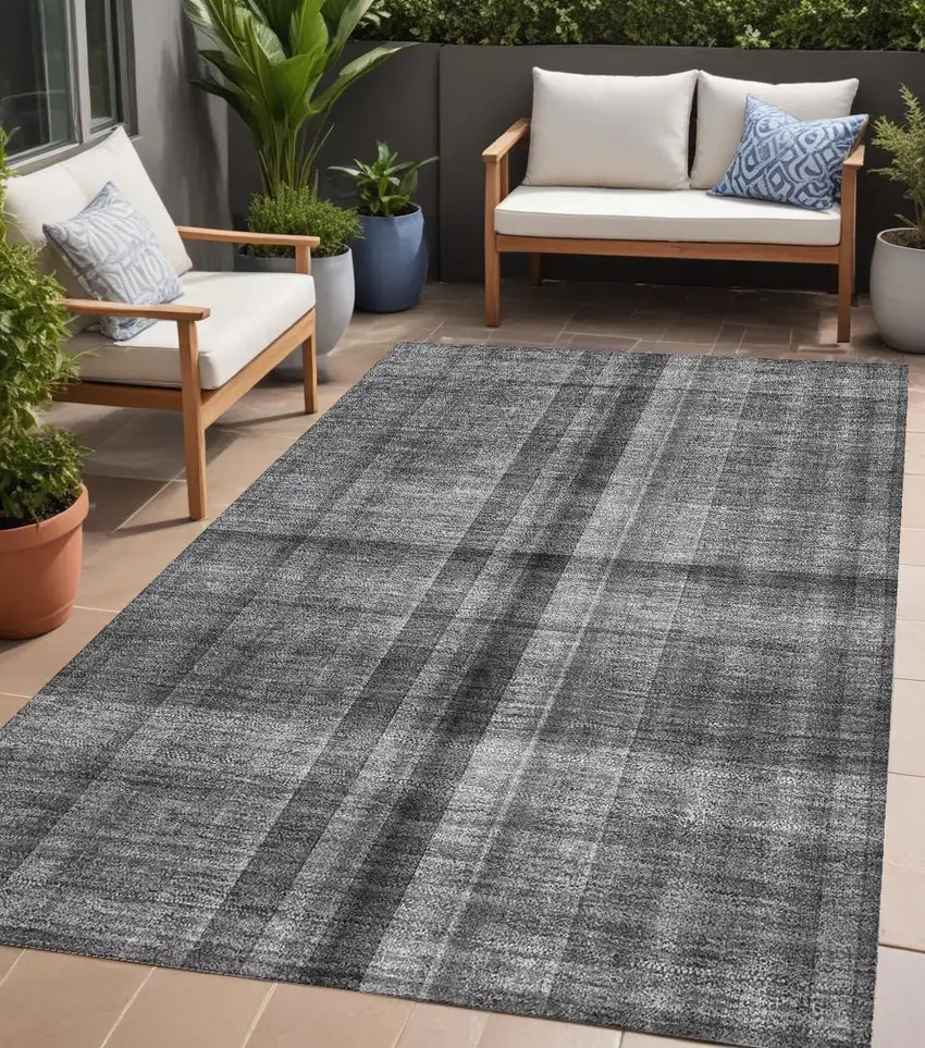 Gray Plaid Washable Non Skid Indoor Outdoor Area Rug