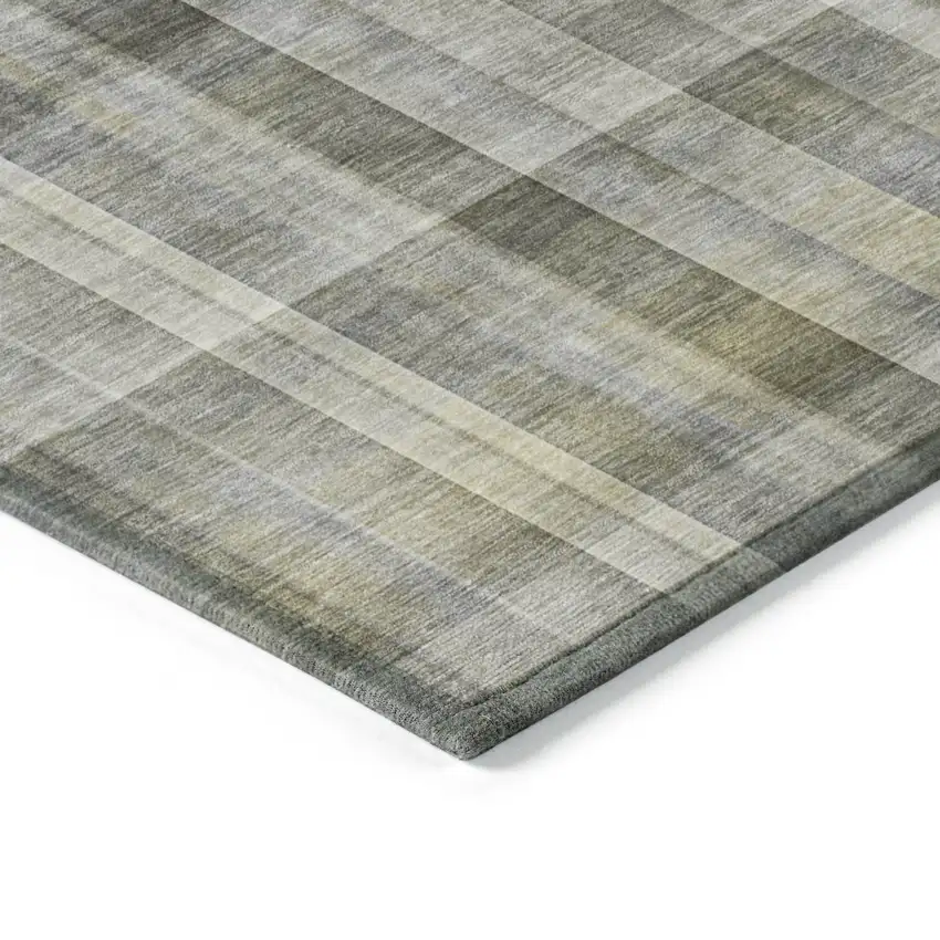 Set an inviting tone in your space with this 9-foot x 12-foot gray plaid washable stain resistant non skid indoor outdoor area rug. This rectangle shaped rug features a plaid design in gray to give it visual interest. A classic shape marries with good looking design for your space the coloring of this rug adds a delightfully neutral tone to your home and will easily match with most any decor. Ideal for spaces with kids and pets, this rug is stain resistant to help repel stains and spilled liquids. Area rugs help to give warmth and sense of home to your space. 108-inch H x 144-inch W x 0.19-inch D