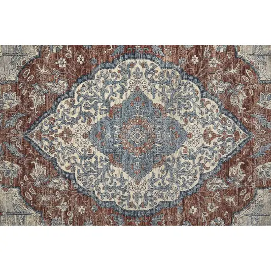 Gray Red And Blue Floral Power Loom Stain Resistant Area Rug