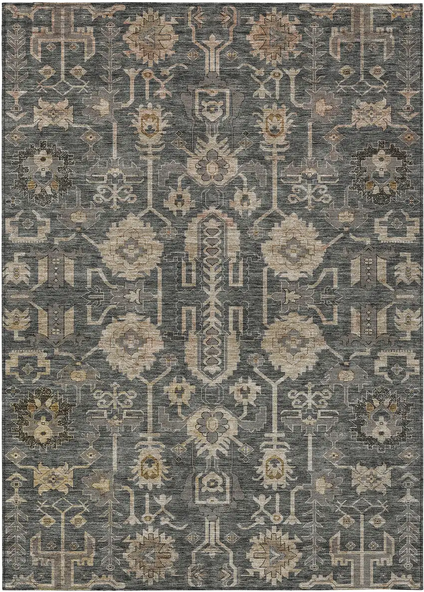 Gray Silver And Beige Oriental Washable Indoor Outdoor Area Rug