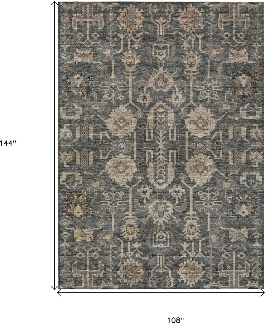 Gray Silver And Beige Oriental Washable Indoor Outdoor Area Rug