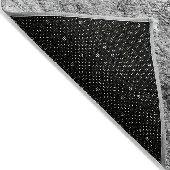 Gray Silver And Charcoal Abstract Washable Indoor Outdoor Area Rug