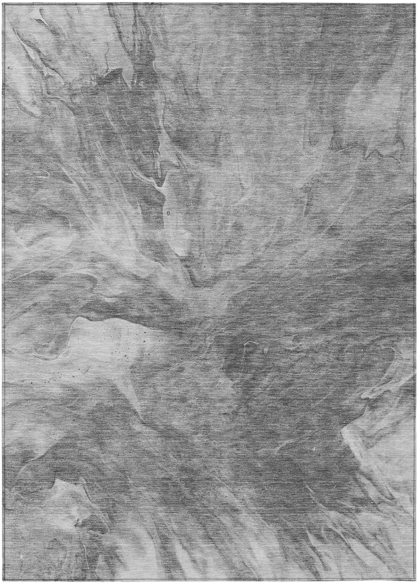Gray Silver And Charcoal Abstract Washable Indoor Outdoor Area Rug
