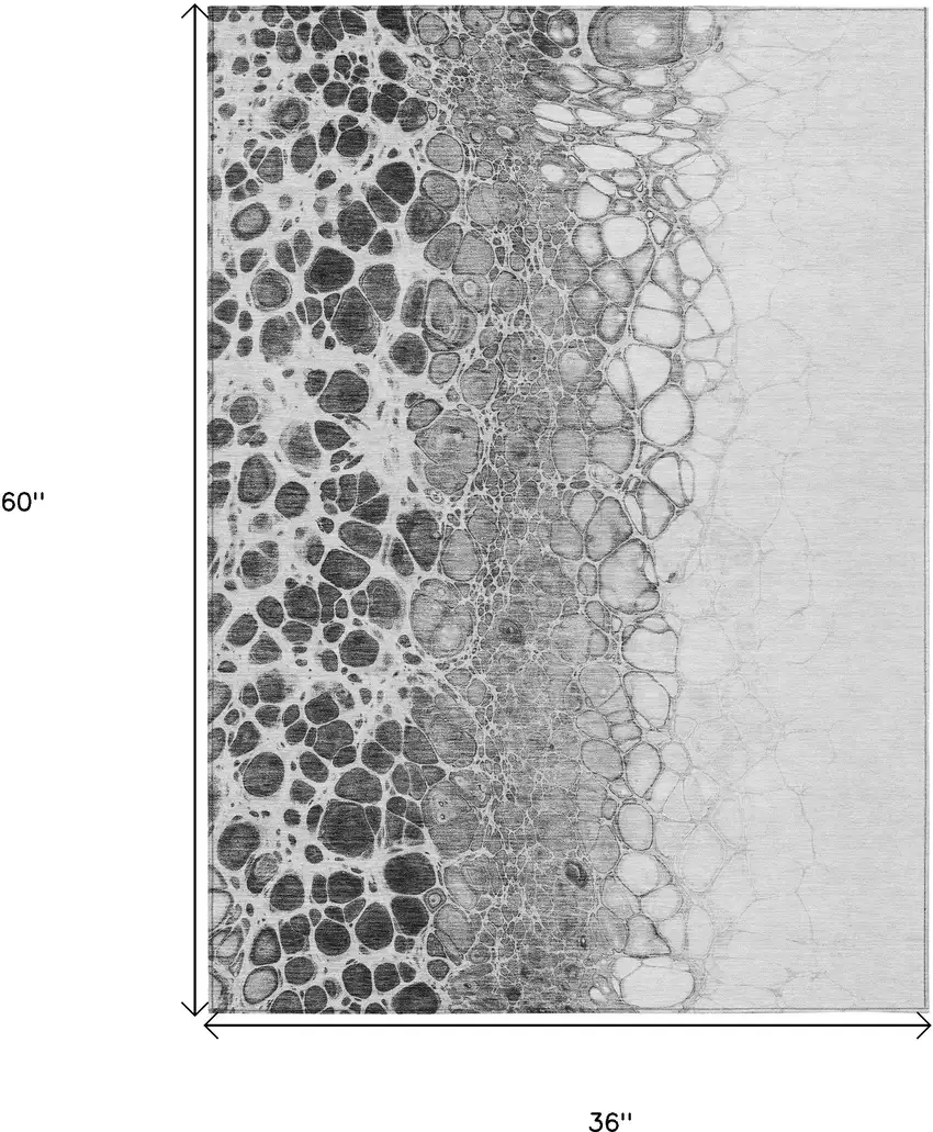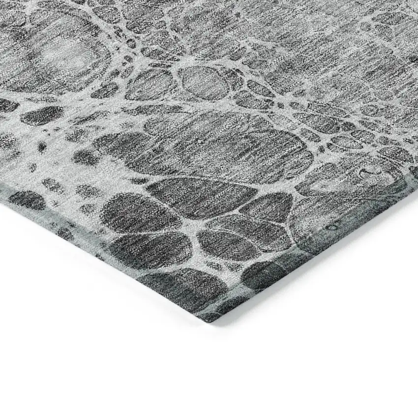 Gray Silver And Charcoal Abstract Washable Indoor Outdoor Area Rug