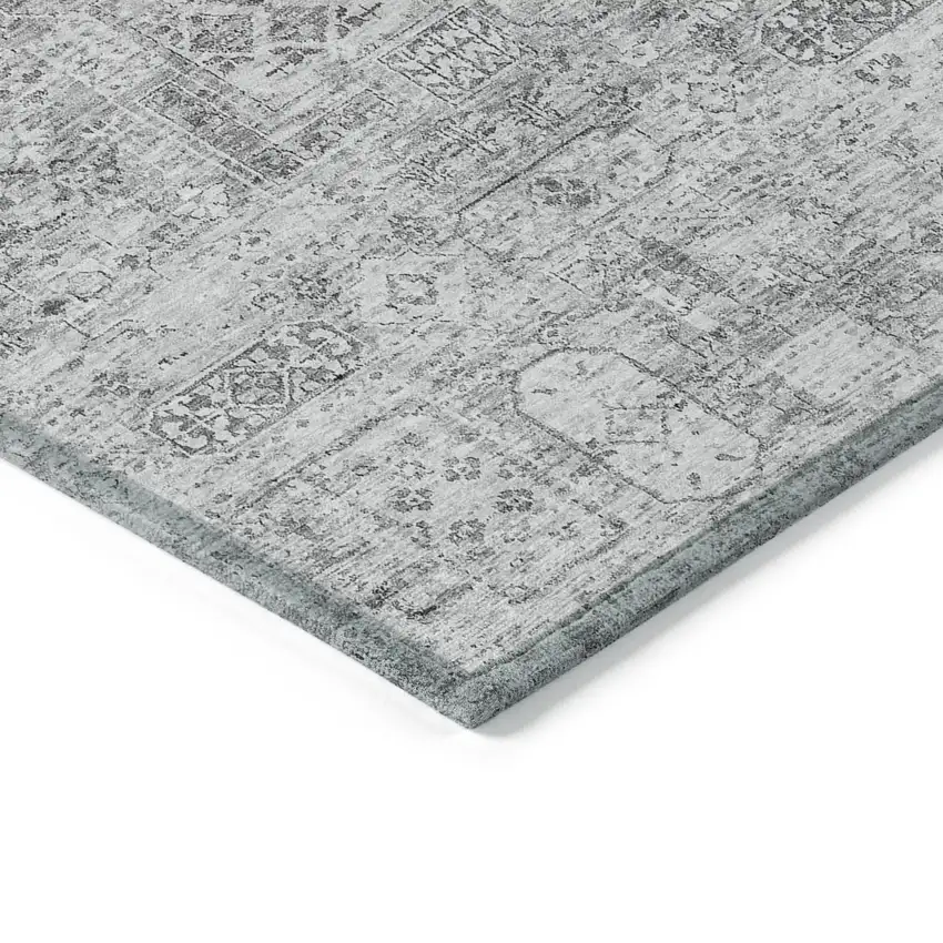Set an inviting tone in your space with this 8-foot x 10-foot gray silver and charcoal floral washable indoor outdoor area rug. This rectangle shaped rug features a floral design that will work well both indoors or out. A classic shape marries with good looking design for your living room, hall, bedroom, porch, patio, or poolside. Ideal for outdoor spaces or high traffic areas with kids and pets, this rug is made from heavy duty polyester that is stain resistant to help repel water, dirt, and stains. Versatile in use, durable, and easy to maintain, this rug is an ideal solution to add a decorative and inviting touch to your indoor or outdoor space. 96-inch h x 120-inch w x 0.19-inch d.