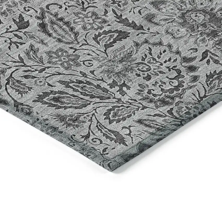 This 8-foot x 10-foot gray silver and charcoal floral washable indoor outdoor area rug, is a great way to add warmth to a room. This rectangle shaped rug features a floral design that will work well both indoors or out. A classic shape marries with good looking design for your living room, hall, bedroom, porch, patio, or poolside. Ideal for outdoor spaces or high traffic areas with kids and pets, this rug is made from heavy duty polyester that is stain resistant to help repel water, dirt, and stains. Makes a great way to dress up your patio, porch, or poolside, but also works well as a durable and easy to maintain option in the kitchen, family room, or mudroom. 96-inch h x 120-inch w x 0.19-inch d.