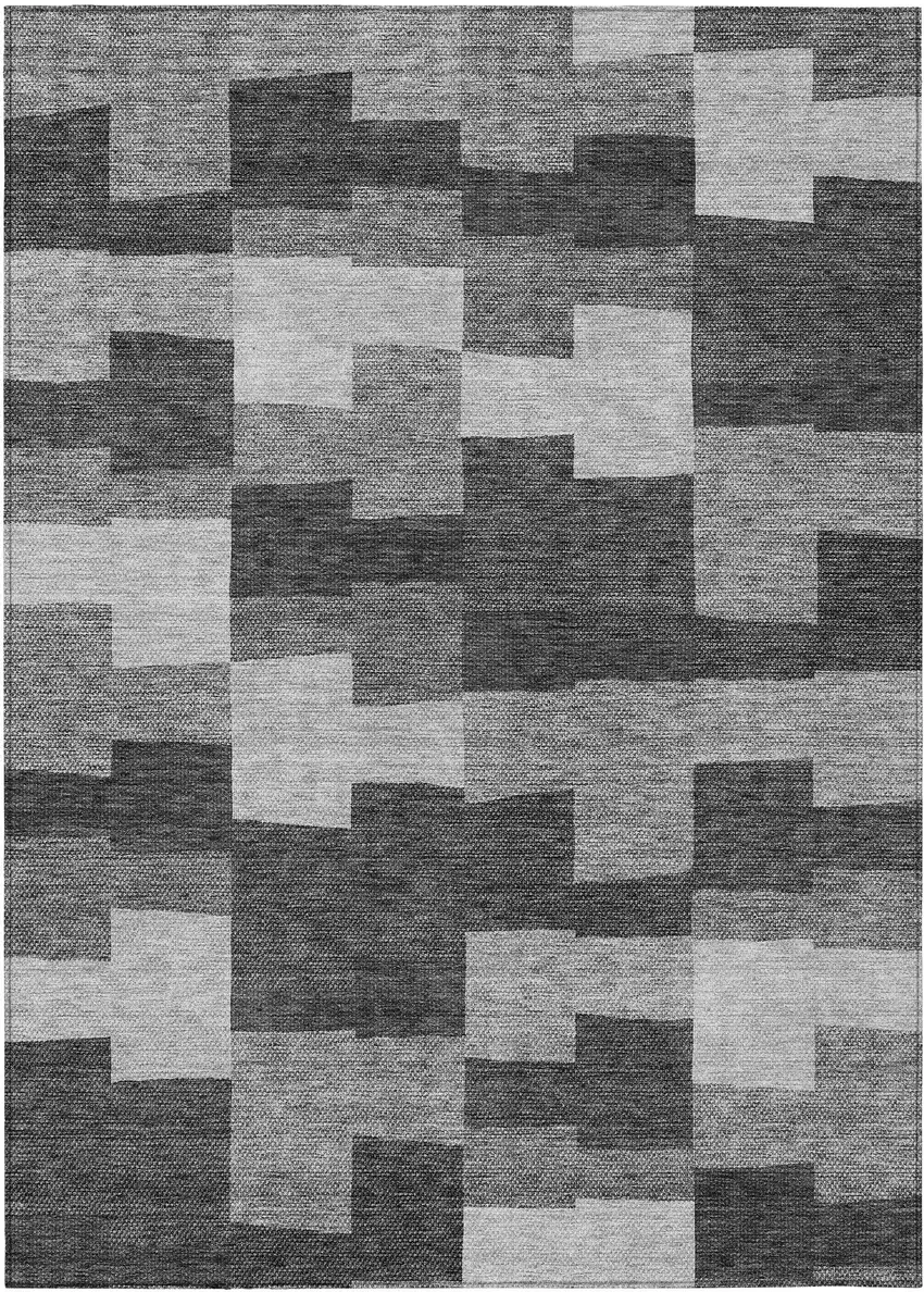 Gray Silver And Charcoal Geometric Washable Indoor Outdoor Area Rug