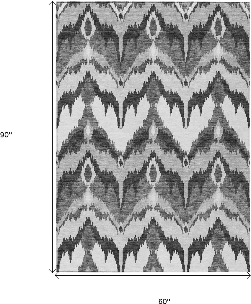 Gray Silver And Charcoal Ikat Washable Indoor Outdoor Area Rug