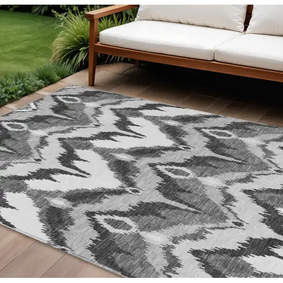 Add great coloration and comfortable texture to your space with this 8-foot x 10-foot gray silver and charcoal ikat washable indoor outdoor area rug. This rectangle shaped rug features a ikat design that will work well both indoors or out. A classic shape marries with good looking design for your living room, hall, bedroom, porch, patio, or poolside. Ideal for outdoor spaces or high traffic areas with kids and pets, this rug is made from heavy duty polyester that is stain resistant to help repel water, dirt, and stains. Versatile in use, durable, and easy to maintain, this rug is an ideal solution to add a decorative and inviting touch to your indoor or outdoor space. 96-inch h x 120-inch w x 0.19-inch d.