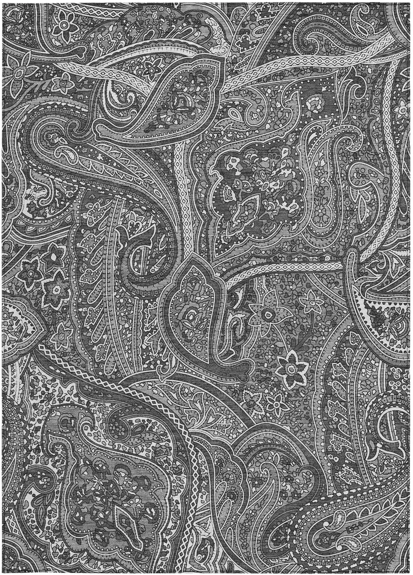 This 3-foot x 5-foot gray silver and charcoal paisley washable indoor outdoor area rug, is a great way to add warmth to a room. This rectangle shaped rug features a paisley design that will work well both indoors or out. A classic shape marries with good looking design for your living room, hall, bedroom, porch, patio, or poolside. Ideal for outdoor spaces or high traffic areas with kids and pets, this rug is made from heavy duty polyester that is stain resistant to help repel water, dirt, and stains. Makes a great way to dress up your patio, porch, or poolside, but also works well as a durable and easy to maintain option in the kitchen, family room, or mudroom. 36-inch h x 60-inch w x 0.19-inch d.