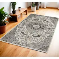 Gray Silver And Charcoal Striped Washable Area Rug With UV Protection